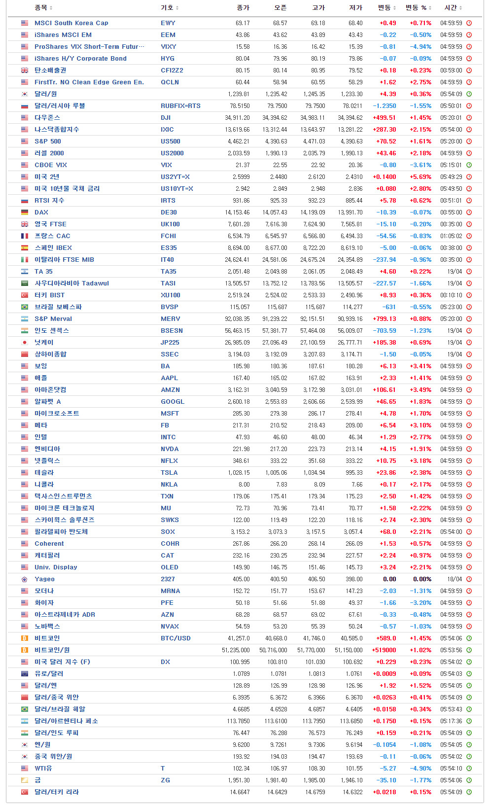 [글로벌시장 지표 / 4월 20일 오전 6시 현재]