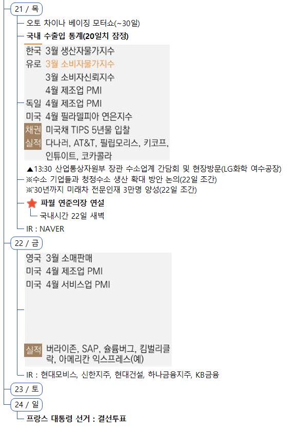 4월 21일(목) 증시캘린더 / 해외마감시황 (0) | 2022.04.21 |