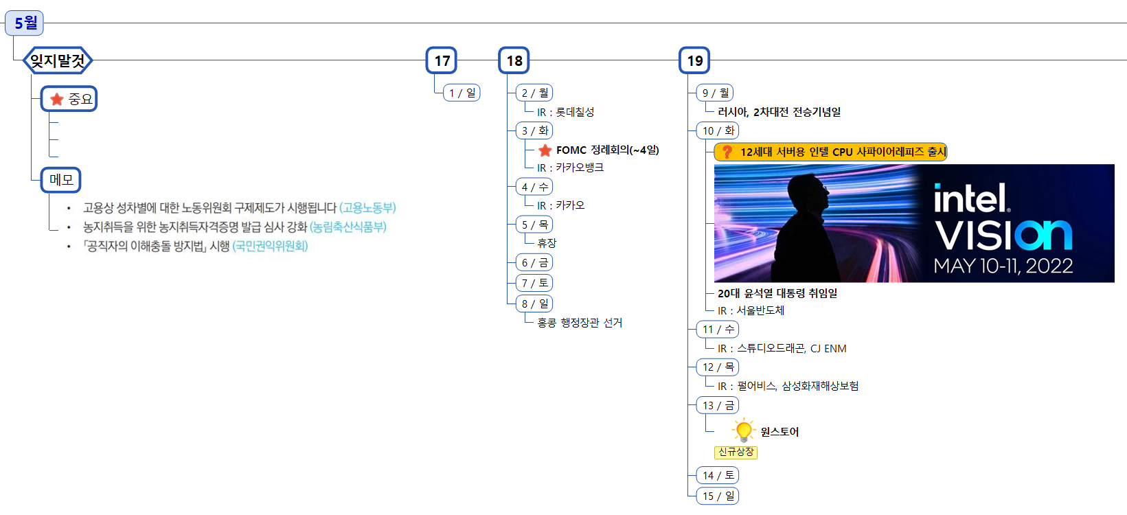 1) 증시캘린더는 개인적으로 관련된 소식을 확인후 작성한 일정이라 변동 또는 오류의 소지가 있습니다.