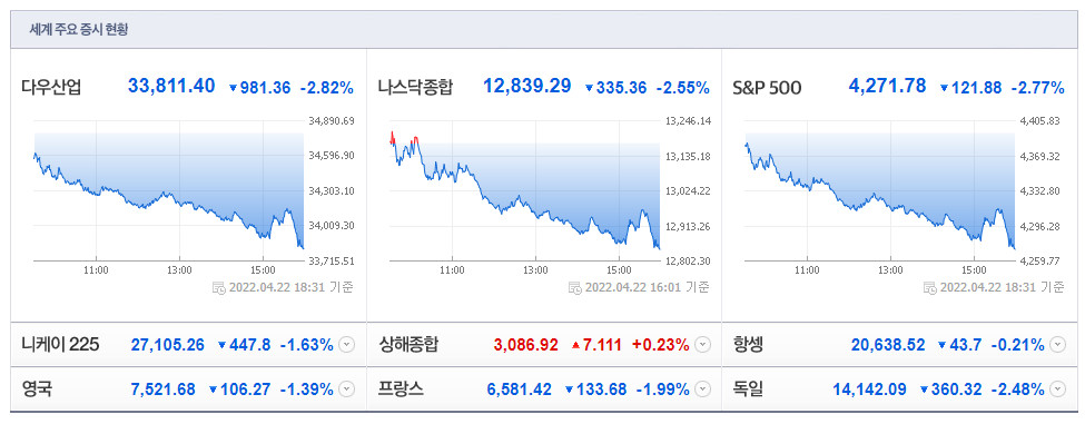 | 4월 22일(금) 증시캘린더 / 해외마감시황 (0) | 2022.04.22 |