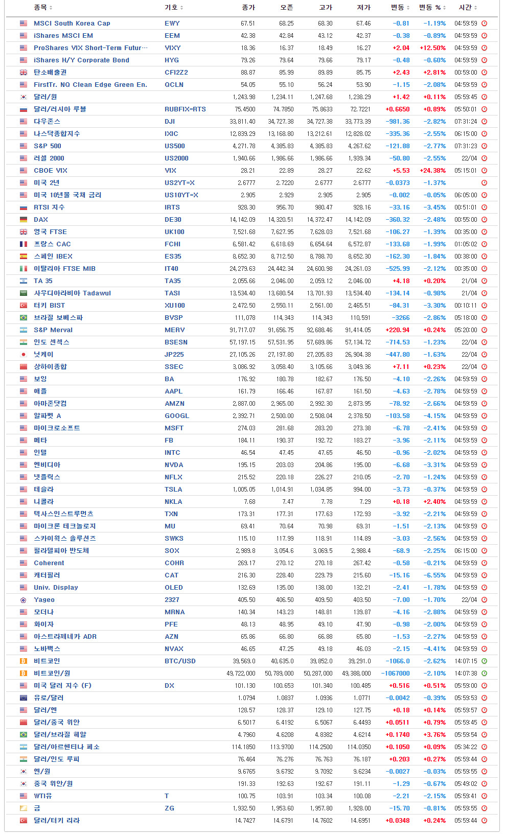 | 4월 21일(목) 증시캘린더 / 해외마감시황 (0) | 2022.04.21 |