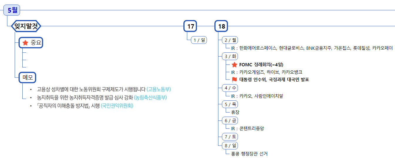 1) 증시캘린더는 개인적으로 관련된 소식을 확인후 작성한 일정이라 변동 또는 오류의 소지가 있습니다.