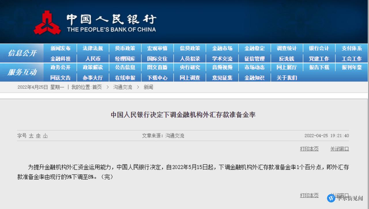 •중국 인민은행, 25일 저녁 외환 지준율을 기존 9%에서 8%로 100bp 전격 인하.