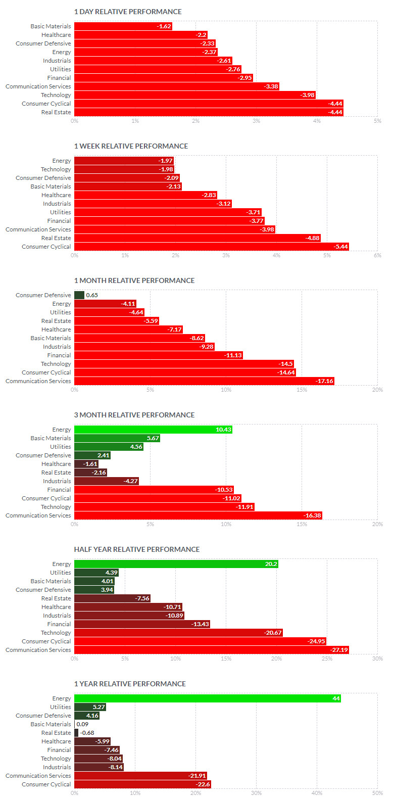 | IT | XLK | 141.6 | -4.1% | 안개 | -10.8% | -10.9% | 4.4% | |