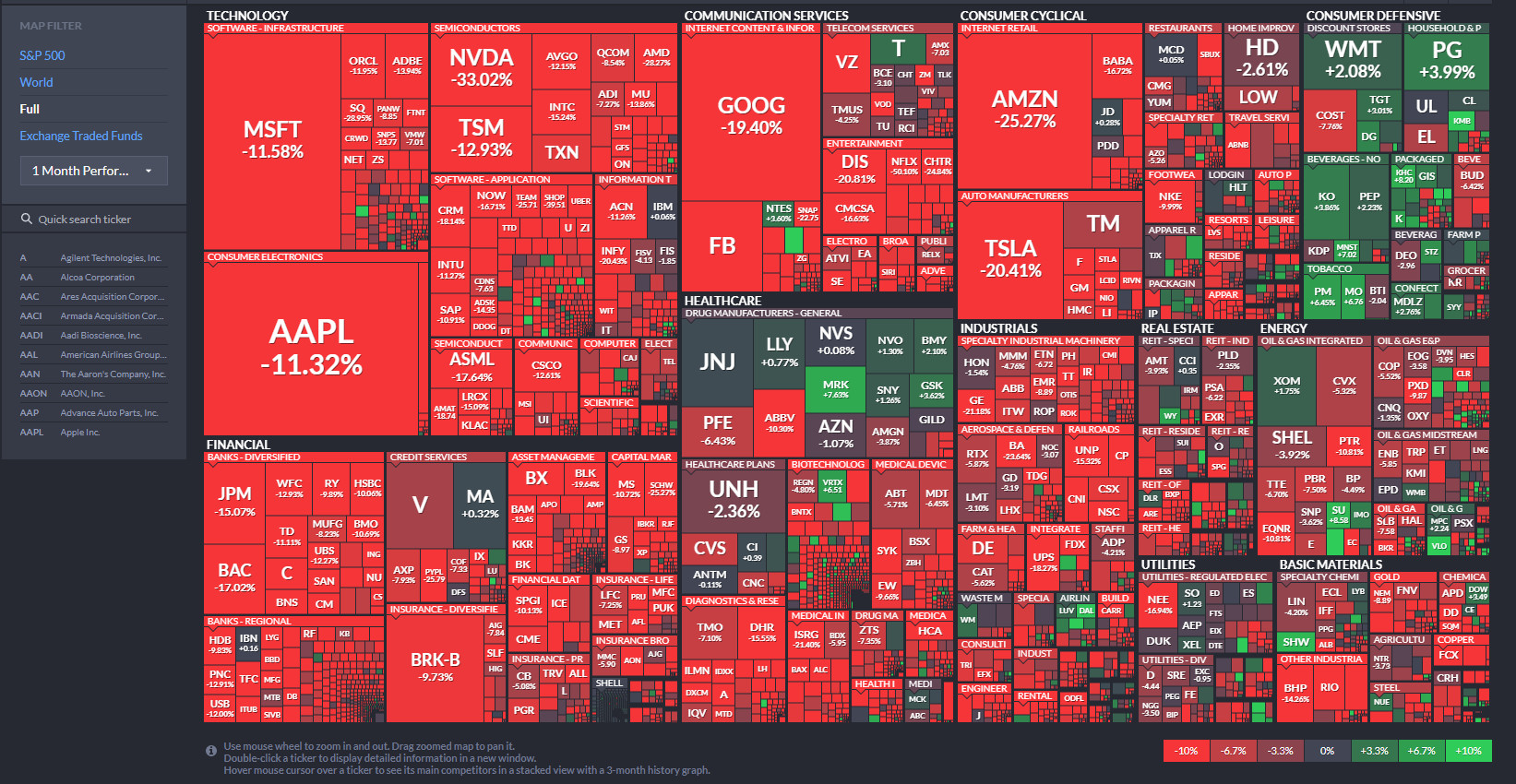 특이한 점은 보통 패닉/쇼크성 급락에 넘쳐나는 급락 종목은 생각보다 별로 눈에 띄지 않았다는 것입니다. PSR 성장주들은 이미 고점대비 x토막으로 급락한 상황이고(오히려 저가매수세), 지수하락을 주도하는 것이 초대형 빅테크들이었기 때문입니다.