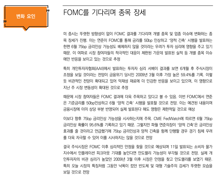 먼저 시장은 오는 4일 끝나는 FOMC 정례회의를 주시하고 있다. FOMC는 기준금리를 50bp(1bp=0.01%포인트) 전격 인상하고 양적긴축(QT)까지 발표할 게 유력하다.