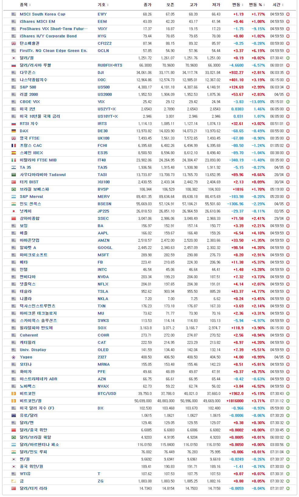 [글로벌시장 지표 / 5월 6일 오전 6시 현재]