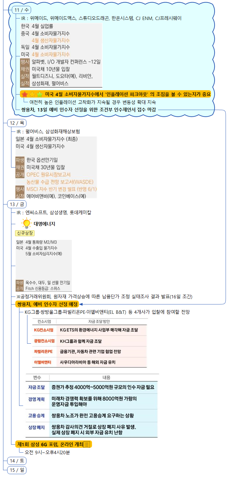 1) 증시캘린더는 개인적으로 관련된 소식을 확인후 작성한 일정이라 변동 또는 오류의 소지가 있습니다.