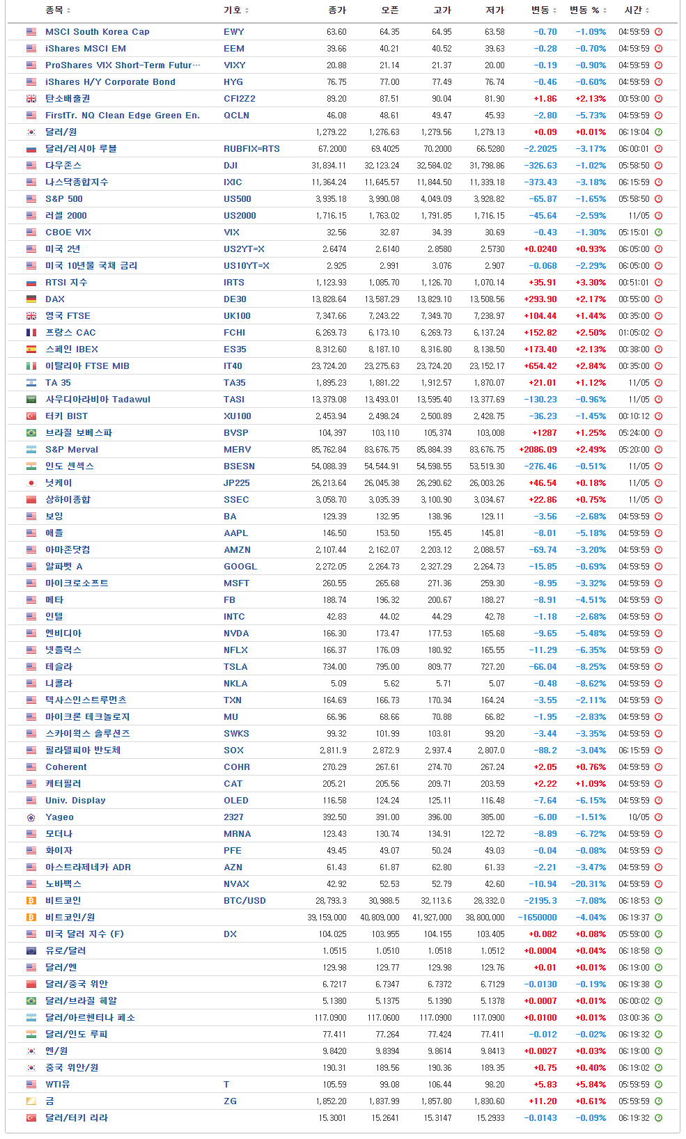 [글로벌시장 지표 / 5월 12일 오전 6시 현재]