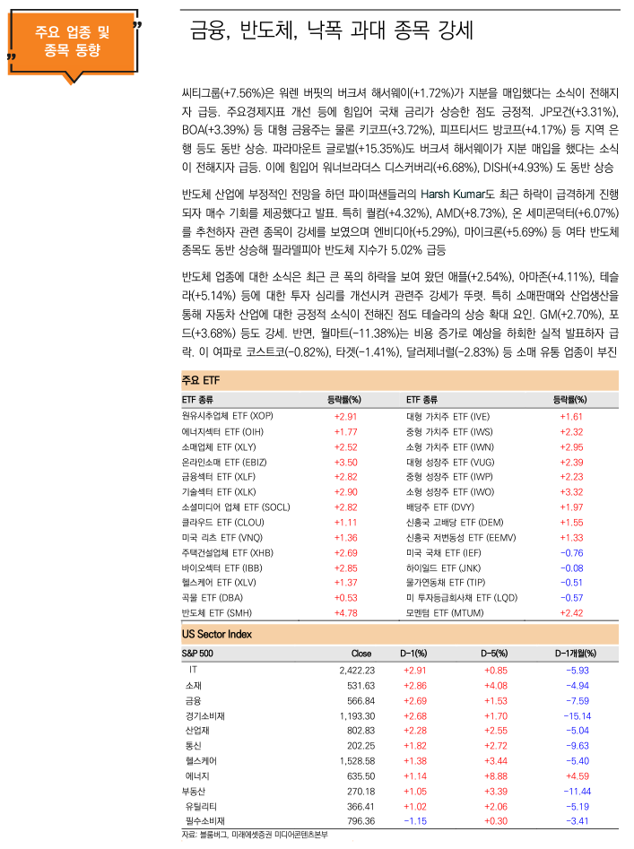 PHLX 반도체지수 | 3,066.50 | 146.44 | 5.0% | 30/0/0 |