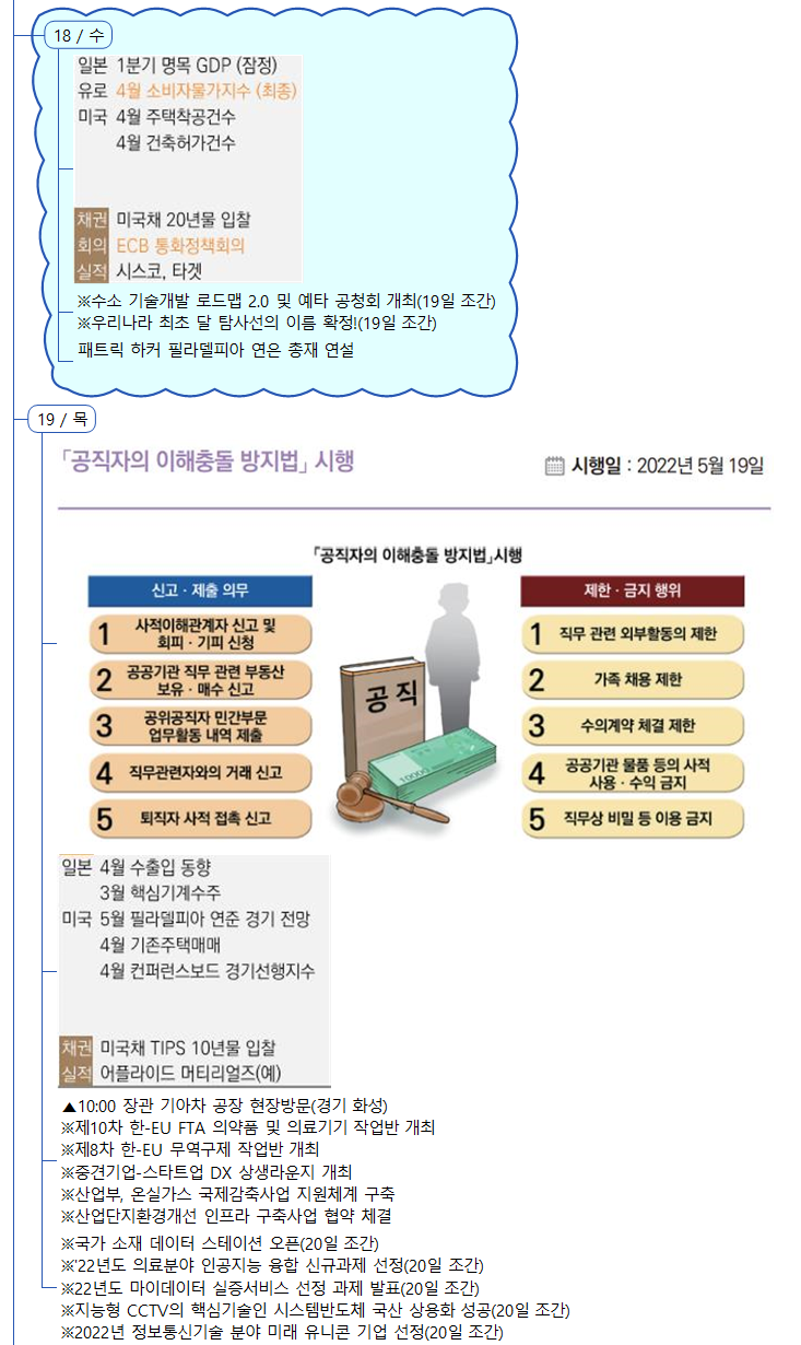 5월 19일(목) 증시캘린더 / 해외마감시황 (0) | 2022.05.19 |