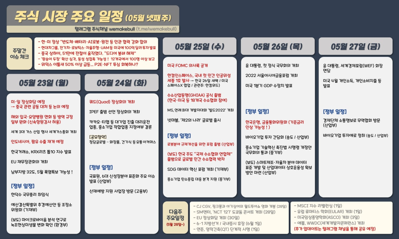 | 5월 25일(수) 증시캘린더 / 해외마감시황 (0) | 2022.05.25 |