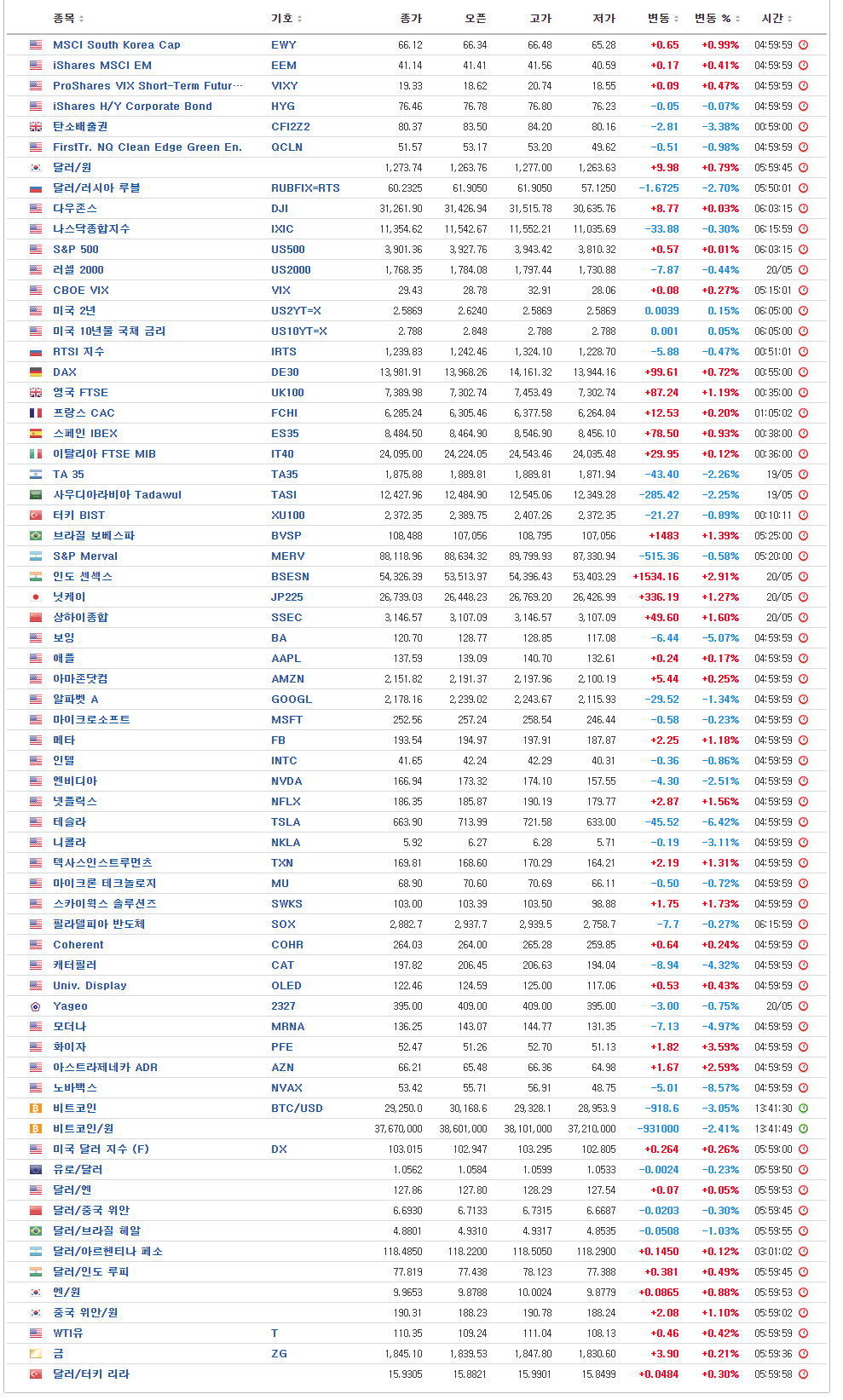 [글로벌시장 지표 / 5월 23일 오전 6시 현재]