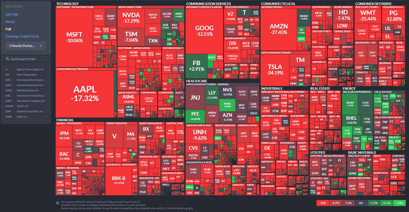 또 미 연방준비제도의 공격적 금리 인상이 당분간 지속될 것으로 예상되며 높은 인플레이션과 함께 경기가 둔화할 수 있다는 우려가 시장의 공포심리를 자극했다. 이같은 우려는 의류 할인점인 로스 스토어 등 소매업체들의 실적으로 확인되면서 투자자들의 우려가 더욱 커졌다. 로스 스토어는 이날 22.47% 하락했다.