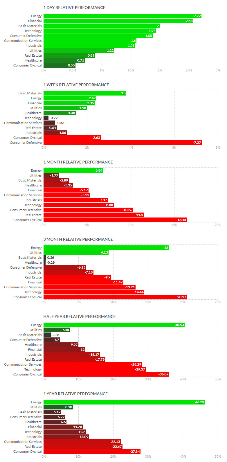 | IT | XLK | 134.0 | 2.2% | 안개 | -5.5% | -11.0% | -2.4% |