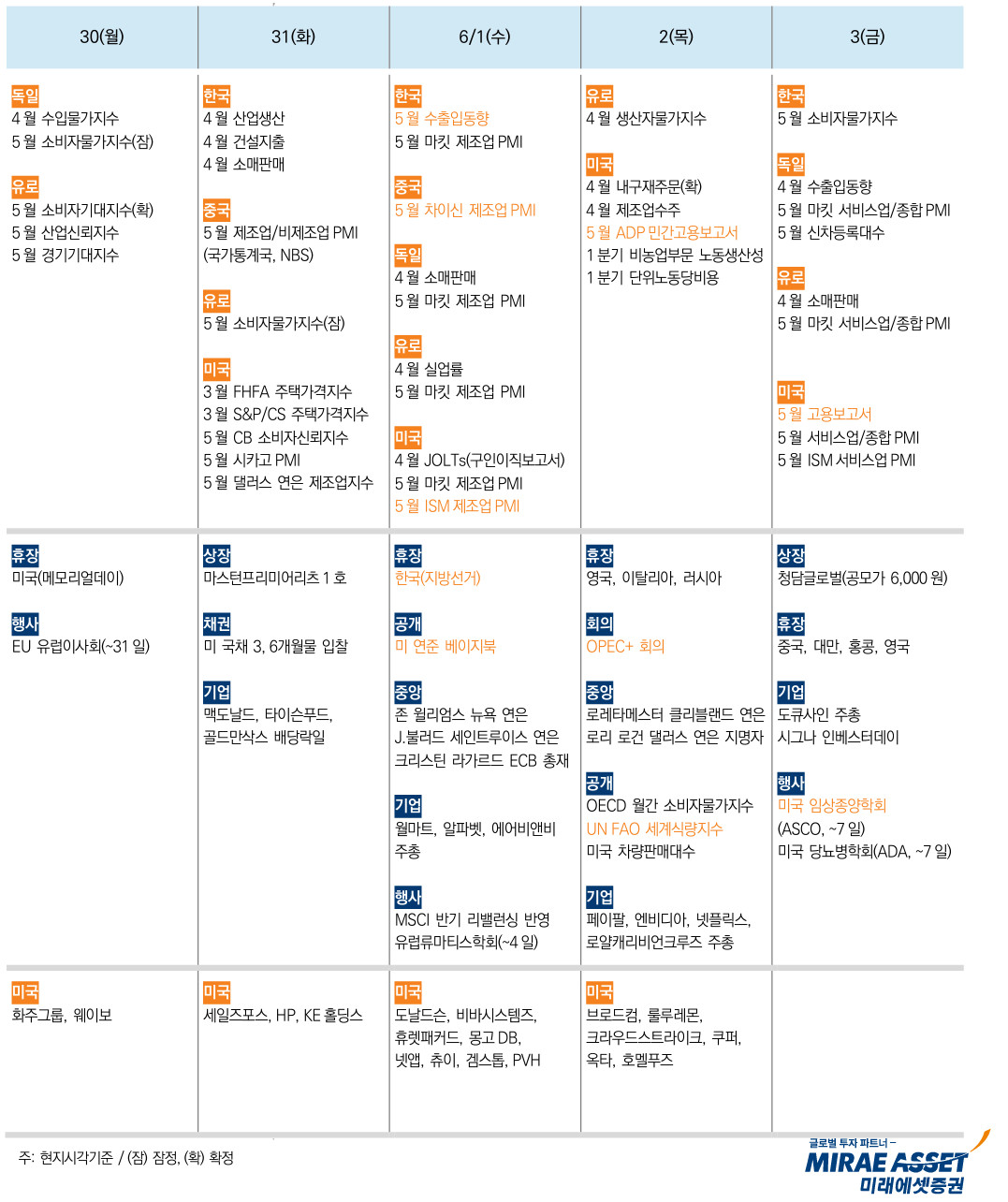 - 금주 일정 : 6월 1일(수) 한국 지방선거