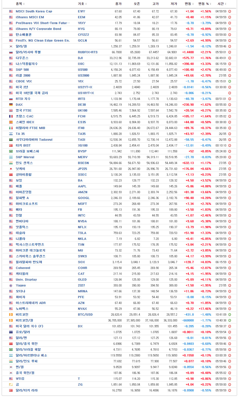 [글로벌시장 지표 / 5월 30일 오전 6시 현재]