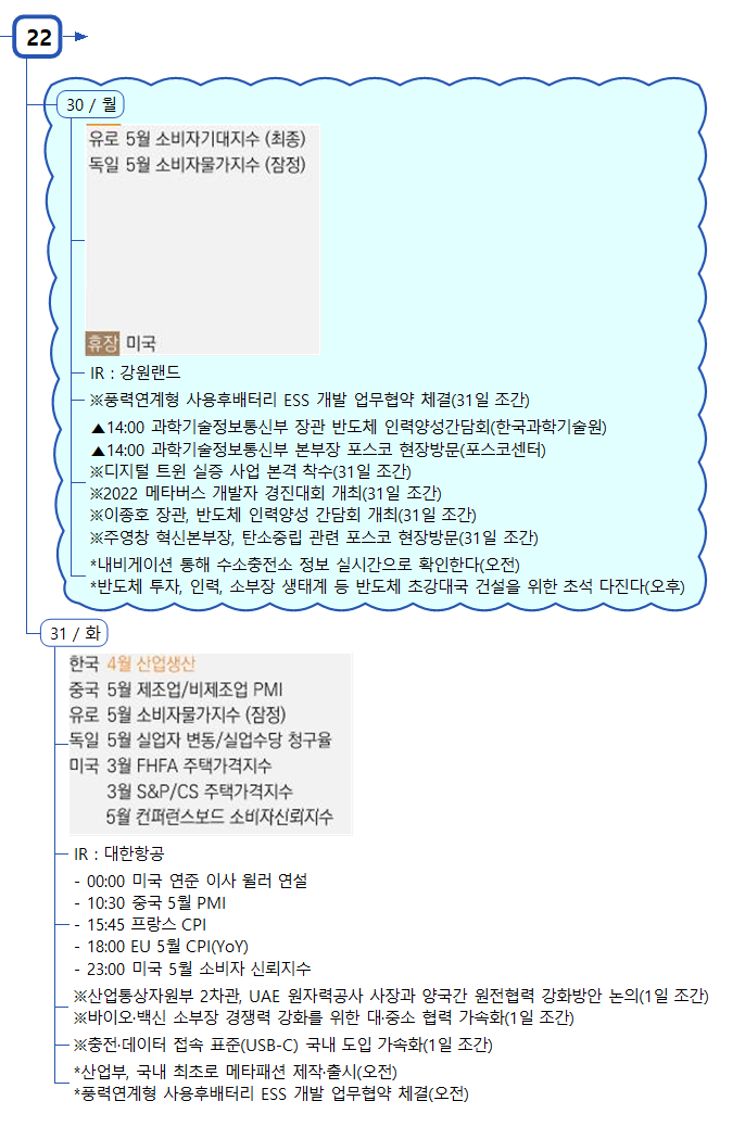 | 5월 31일(화) 증시캘린더 / 해외마감시황 (0) | 2022.05.31 |