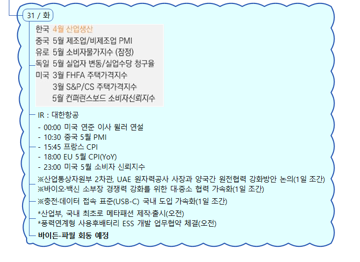 1) 증시캘린더는 개인적으로 관련된 소식을 확인후 작성한 일정이라 변동 또는 오류의 소지가 있습니다.