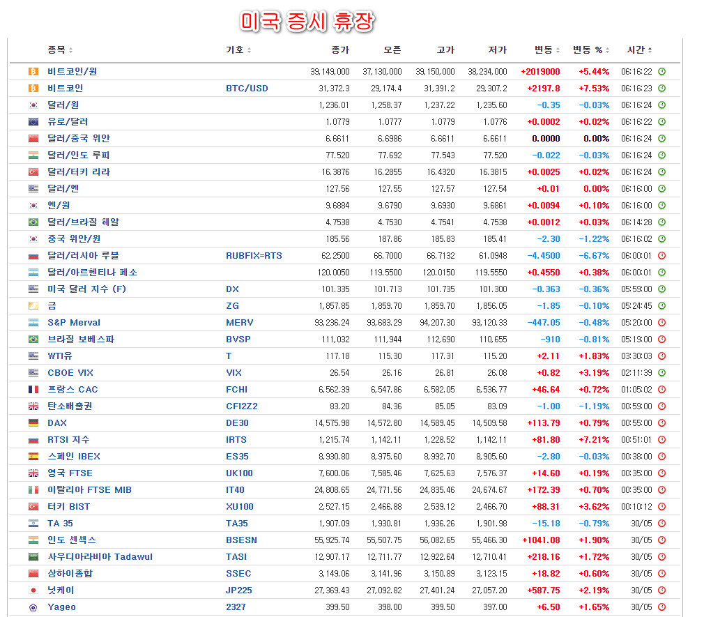 뉴욕증시는 30일(현지시간) 메모리얼 데이로 휴장했다.