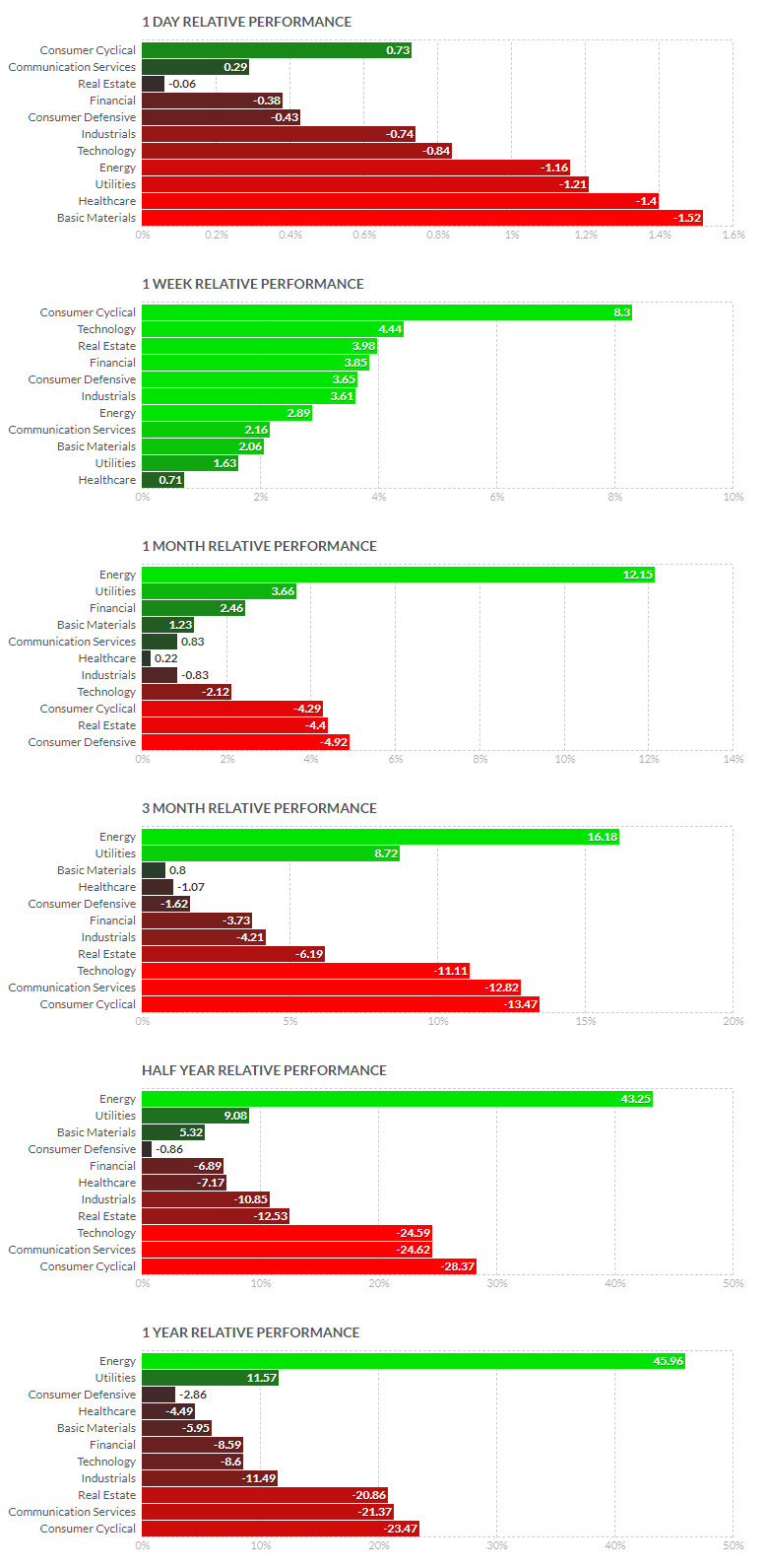 | 자유소비재 | XLY | 154.5 | 0.5% | 안개 | -6.3% | -5.2% | -9.1% |