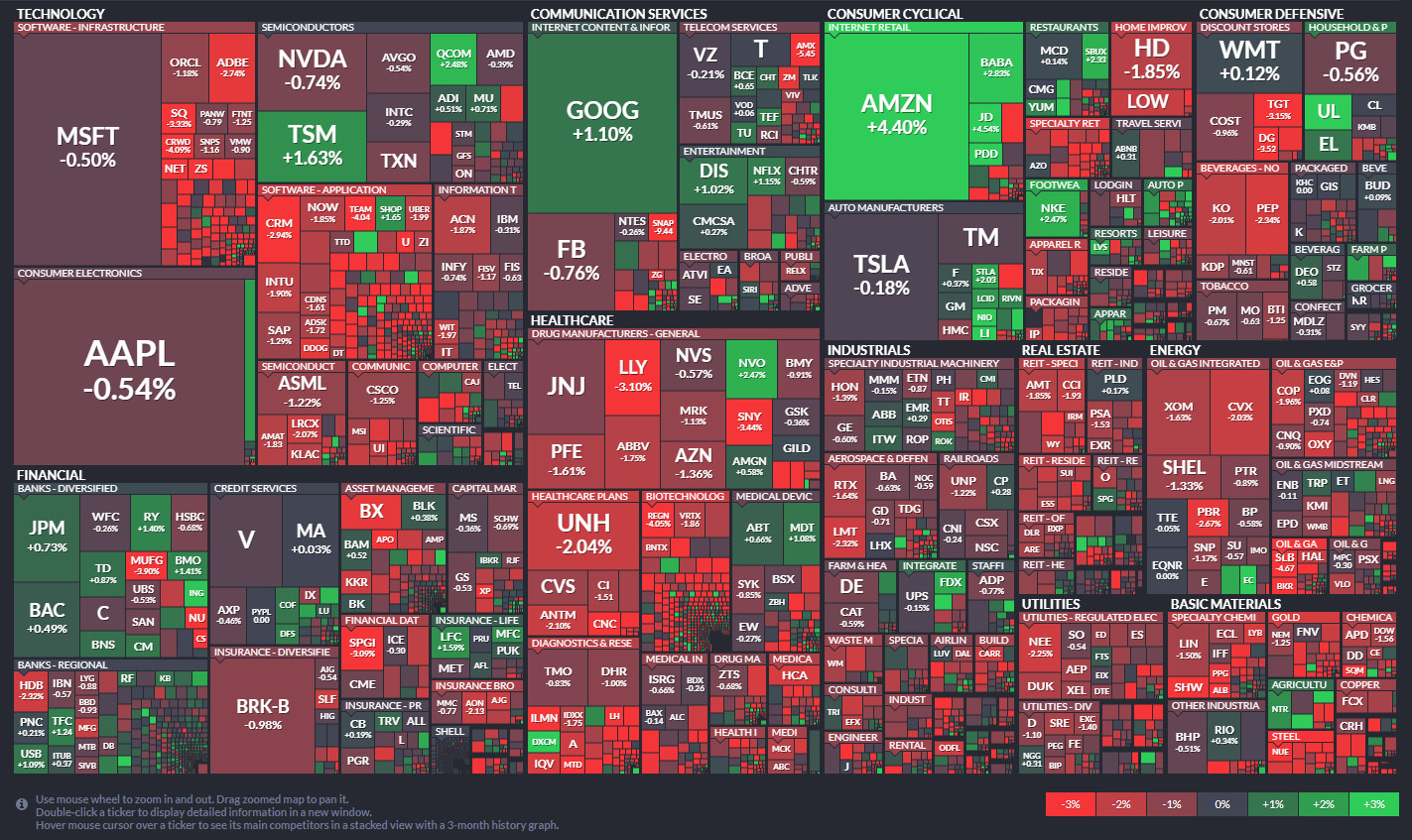 •코로나 팬데믹 상승분을 모두 반납한 Amazon은 1/20 주식분할이 다가오며 최근4일간 15% 상승(오늘+4.4%)