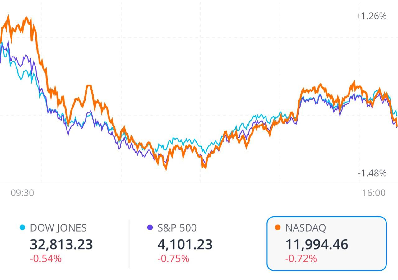 | NASDAQ | 11,994.46 | -86.93 | -0.7% | 1207/2209/334 |