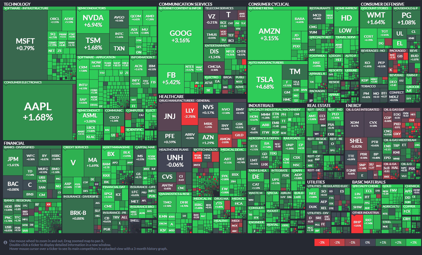 | DOW | 33,248.28 | 435.05 | 1.3% | 23/7/0 |