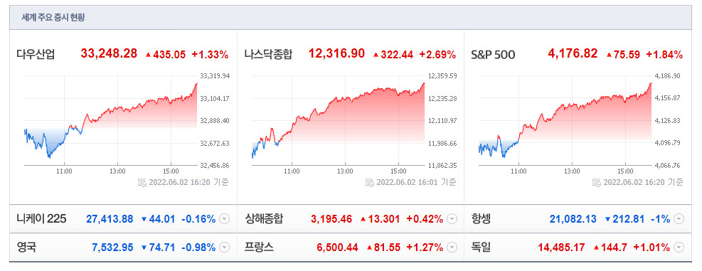 | 6월 2일(목) 증시캘린더 / 해외마감시황 (0) | 2022.06.02 |