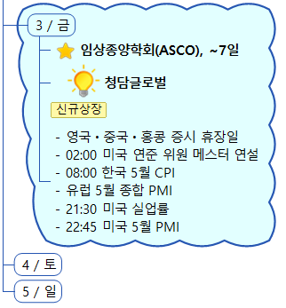 1) 증시캘린더는 개인적으로 관련된 소식을 확인후 작성한 일정이라 변동 또는 오류의 소지가 있습니다.