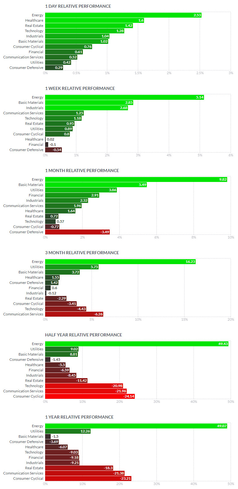 | IT | XLK | 141.6 | 1.2% | 햇빛 | 2.7% | -0.1% | 0.0% |