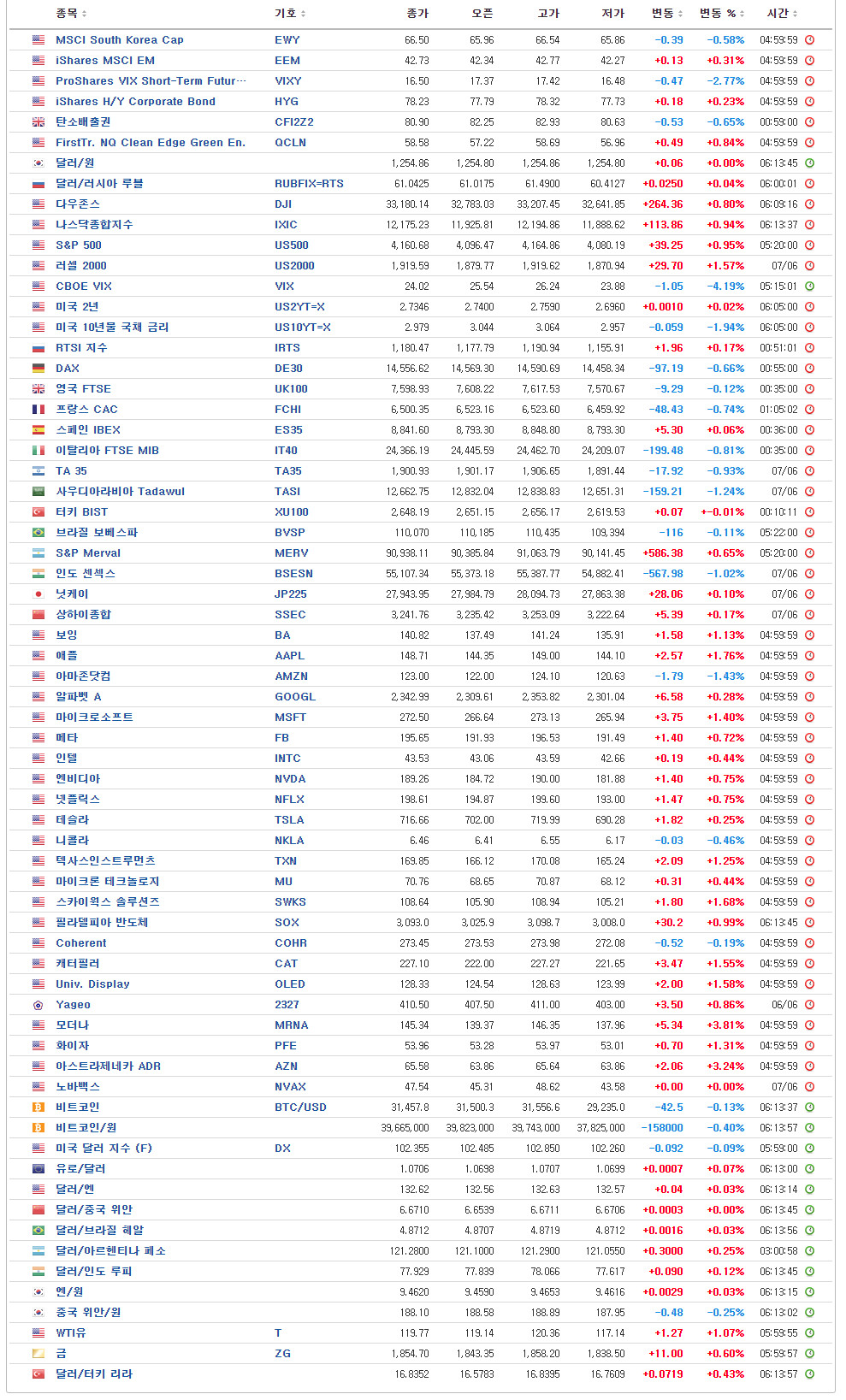 [글로벌시장 지표 / 6월 8일 오전 6시 현재]