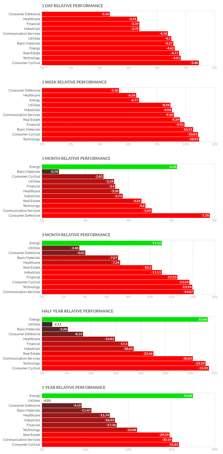 | IT | XLK | 125.3 | -4.4% | 안개 | -9.6% | -18.9% | -11.2% | |