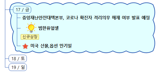 1) 증시캘린더는 개인적으로 관련된 소식을 확인후 작성한 일정이라 변동 또는 오류의 소지가 있습니다.