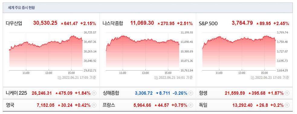 [글로벌시장 지표 / 6월 22일 오전 6시 현재]
