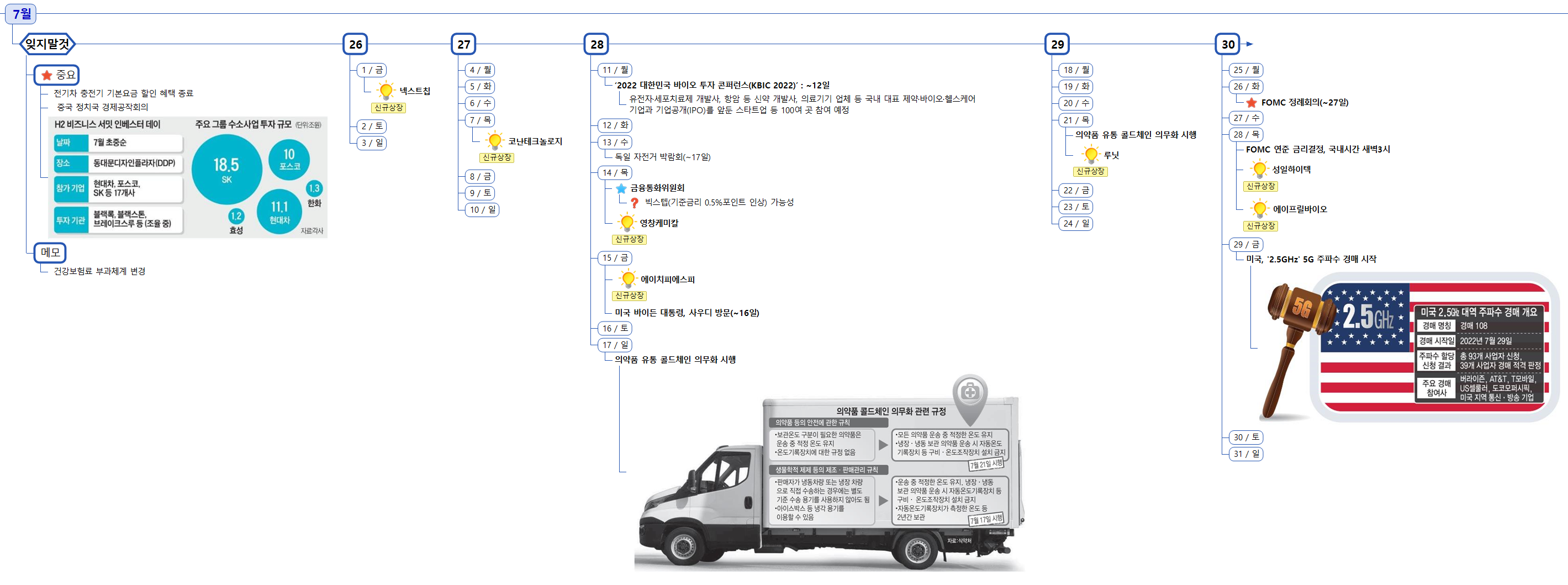 •조만간 2분기 실적 시즌에 진입할 예정이며, 특히 7월25일 전후로 빅테크의 2분기 실적발표시점과 FOMC 일정이 겹치며 변동성이 크게 확대될 가능성 유의