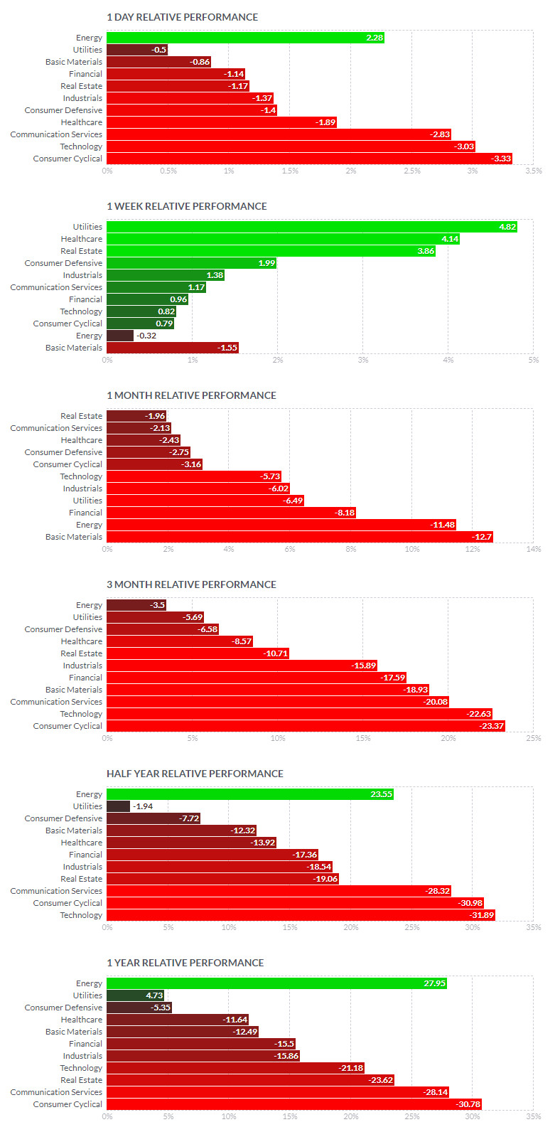 | IT | XLK | 128.6 | -3.0% | 안개 | -7.9% | -20.2% | -13.5% | |