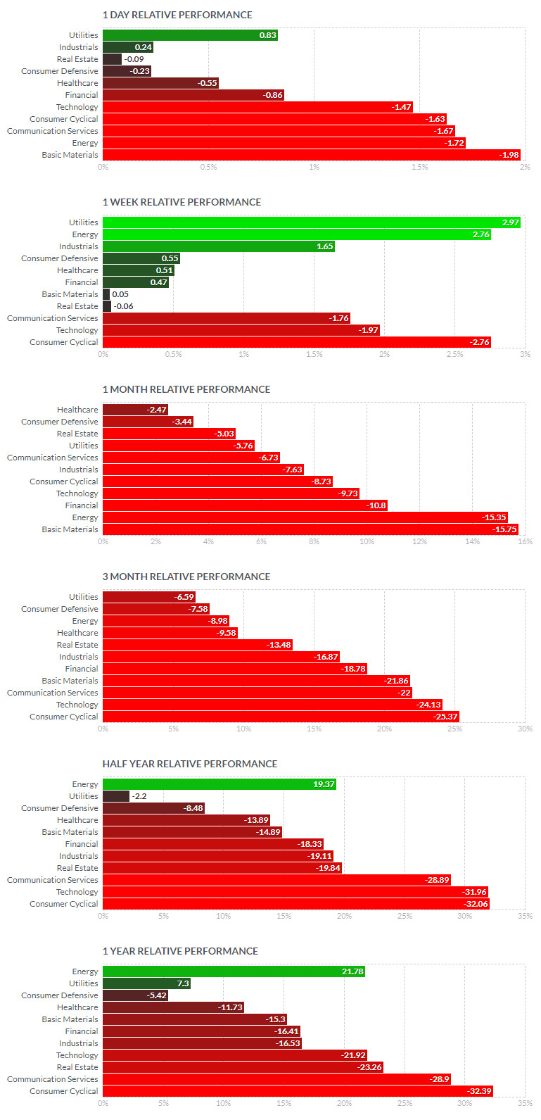 IT | XLK | 127.2 | -1.3% | 안개 | -8.9% | -17.4% | -15.3% | |