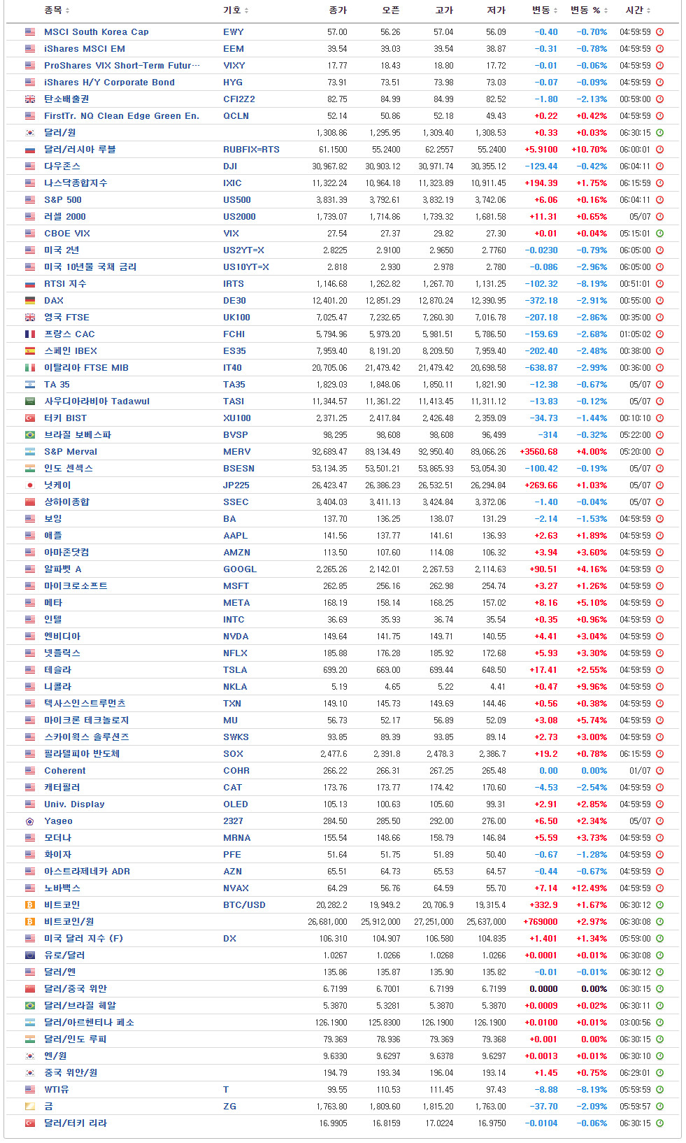 [글로벌시장 지표 / 7월 6일 오전 6시 현재]