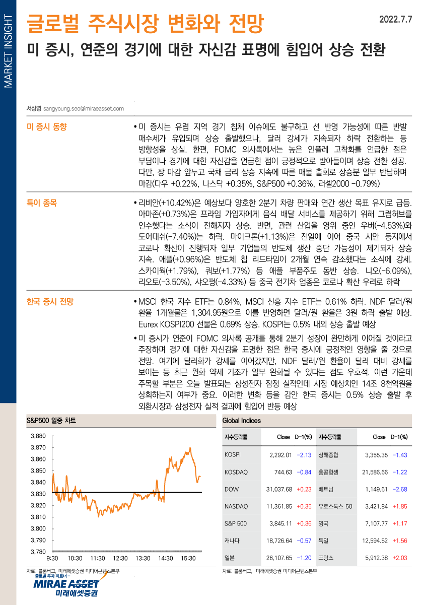 [신영증권 자산전략팀] 22.7.7 모닝 브리프
