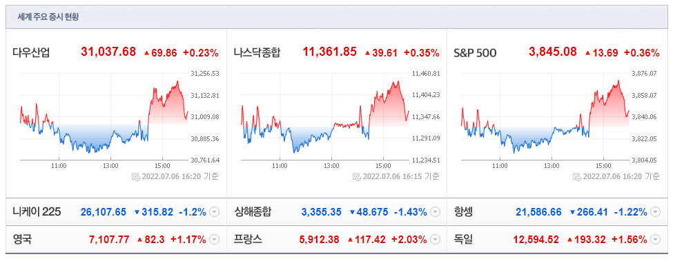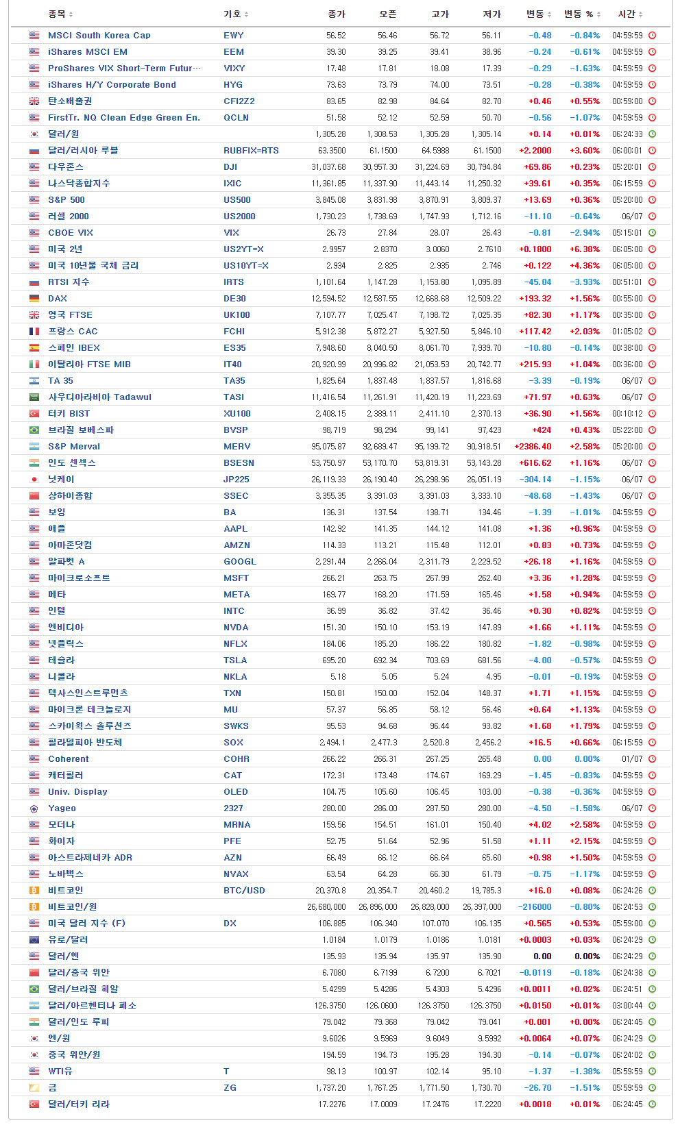[글로벌시장 지표 / 7월 7일 오전 6시 현재]