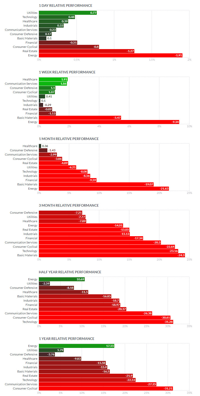 이날 S&P500지수 내 유틸리티, 기술, 헬스, 자재(소재) 관련주가 올랐고, 에너지, 금융, 임의소비재 관련주는 하락했다.
