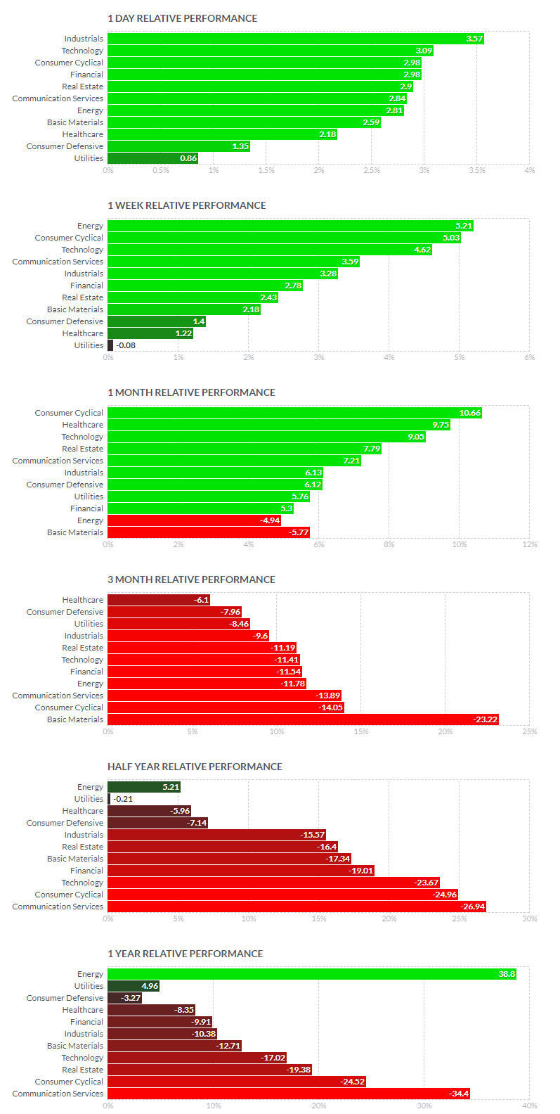 | IT | XLK | 135.1 | 3.0% | 햇빛 | 6.4% | -6.7% | -11.9% |