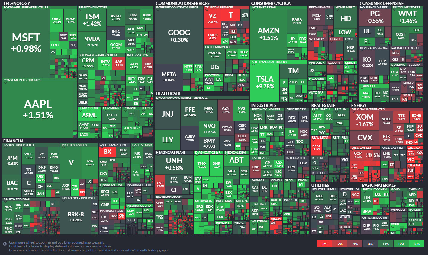 애플(+1.51%), 마이크로소프트(+0.98%), 엔비디아(+1.36%) 등 주요 기술주들도 올랐다. 테슬라는 9.78% 뛰며 팔백슬라를 회복했다.