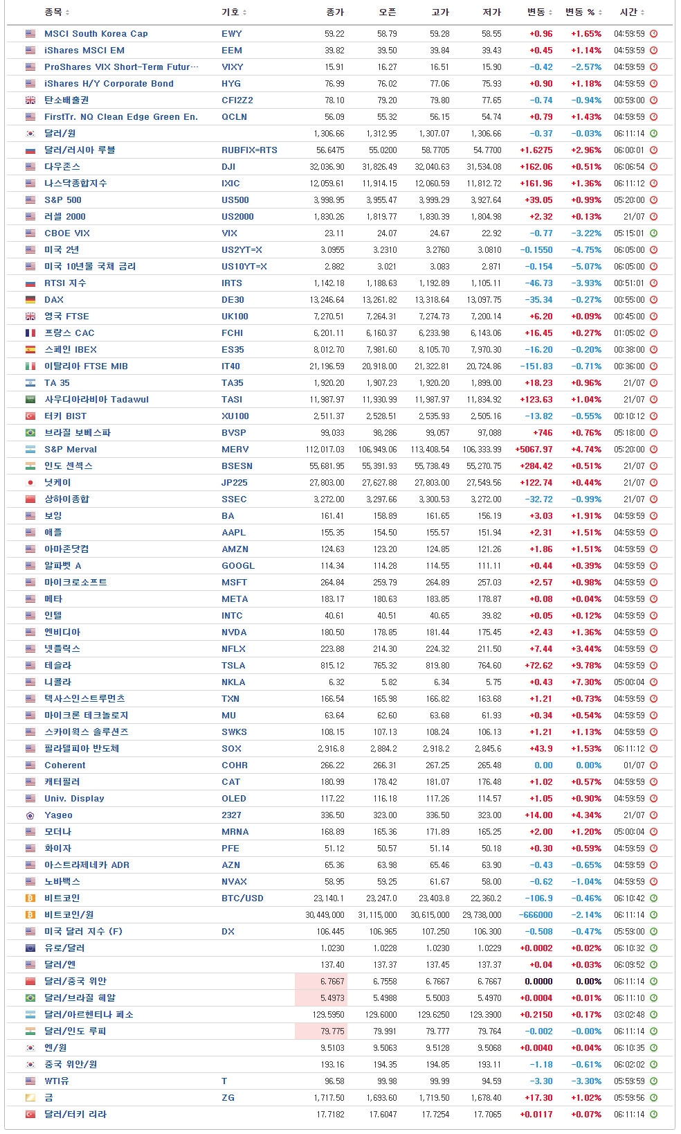 [글로벌시장 지표 / 7월 22일 오전 6시 현재]