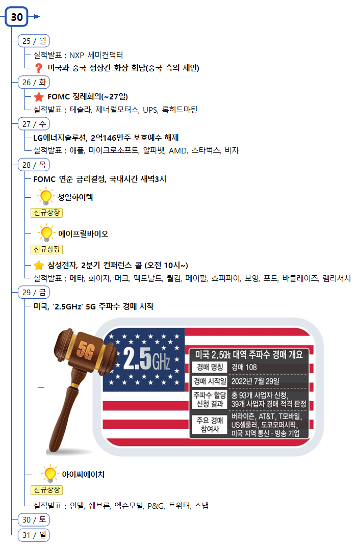 | 7월 26일(화) 증시캘린더 / 해외마감시황 (0) | 2022.07.26 |