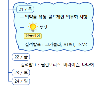 1) 증시캘린더는 개인적으로 관련된 소식을 확인후 작성한 일정이라 변동 또는 오류의 소지가 있습니다.