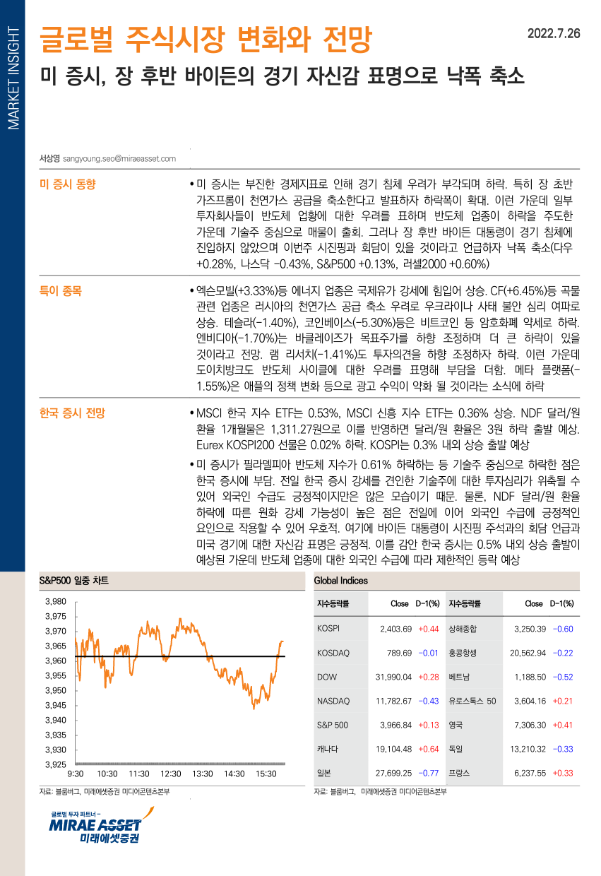 [신영증권 자산전략팀] 22.7.26 모닝 브리프