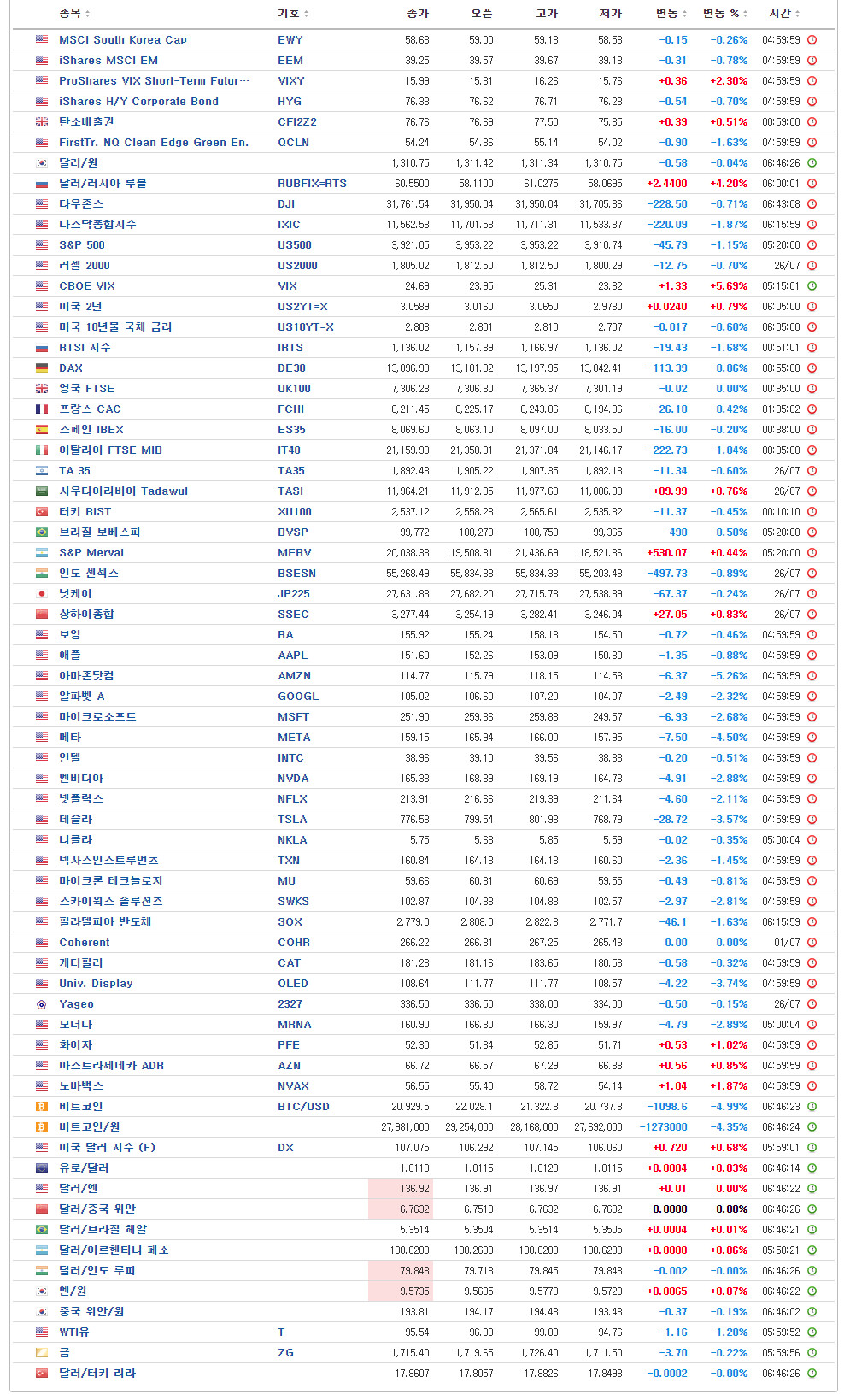 [글로벌시장 지표 / 7월 27일 오전 6시 현재]