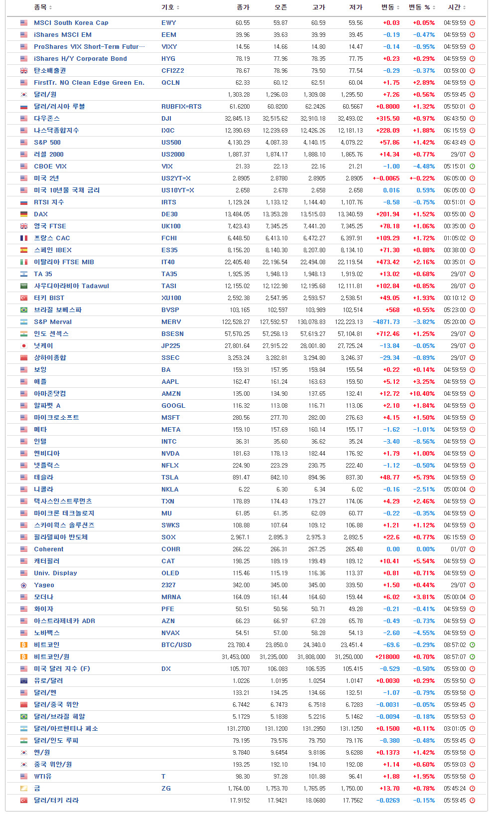 [글로벌시장 지표 / 8월 1일 오전 6시 현재]